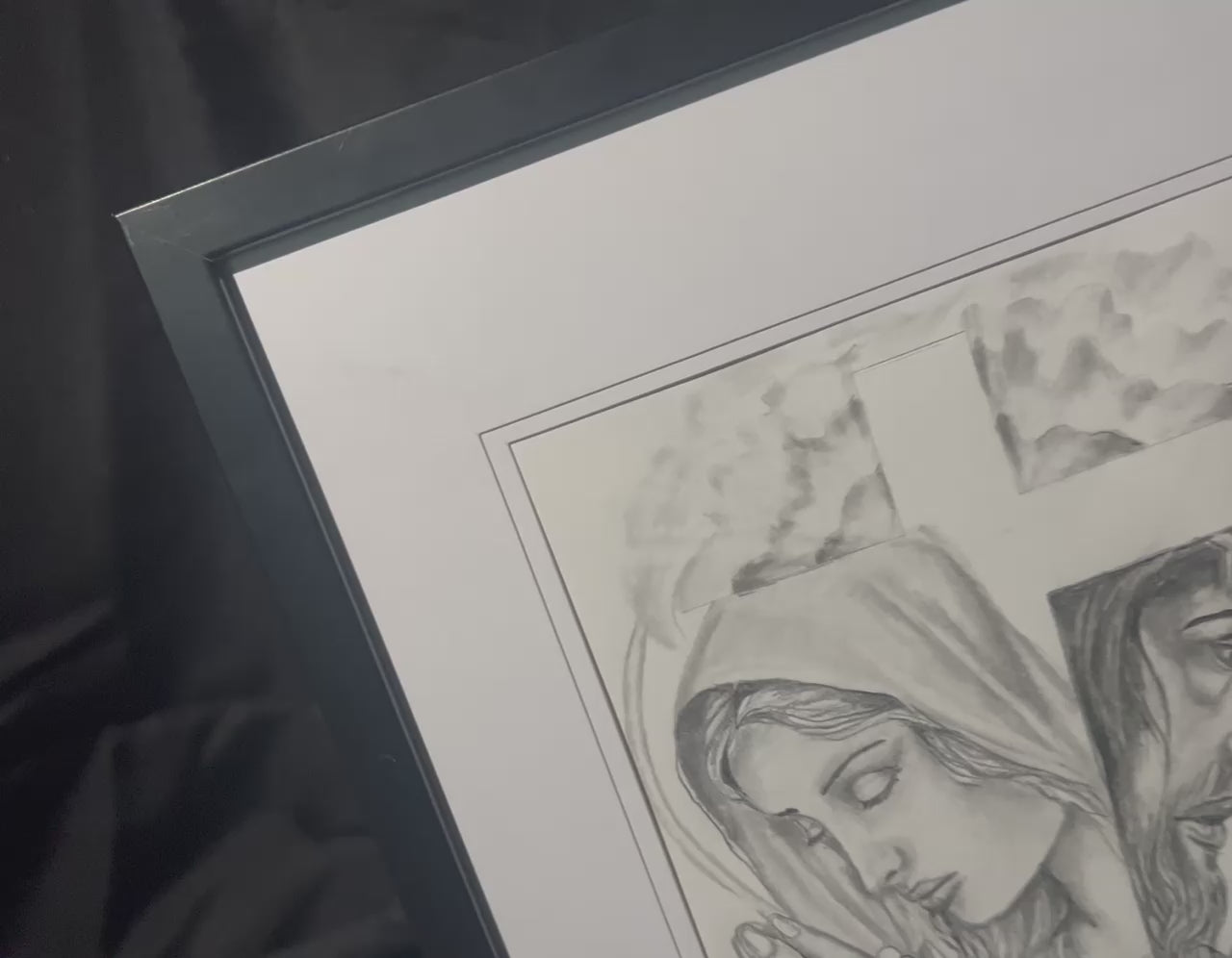 Jesus & Mother Mary framed original drawing