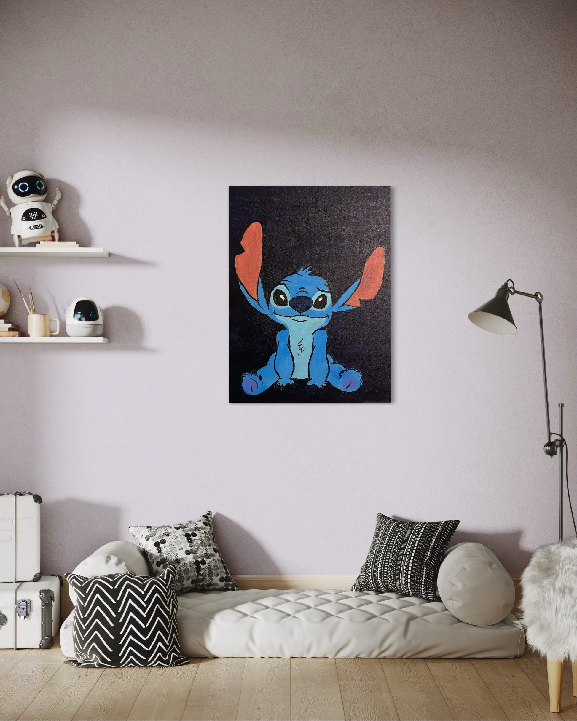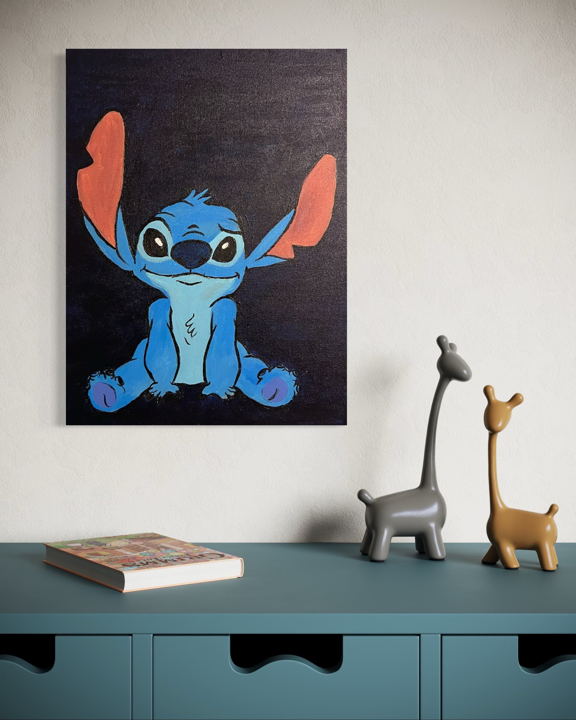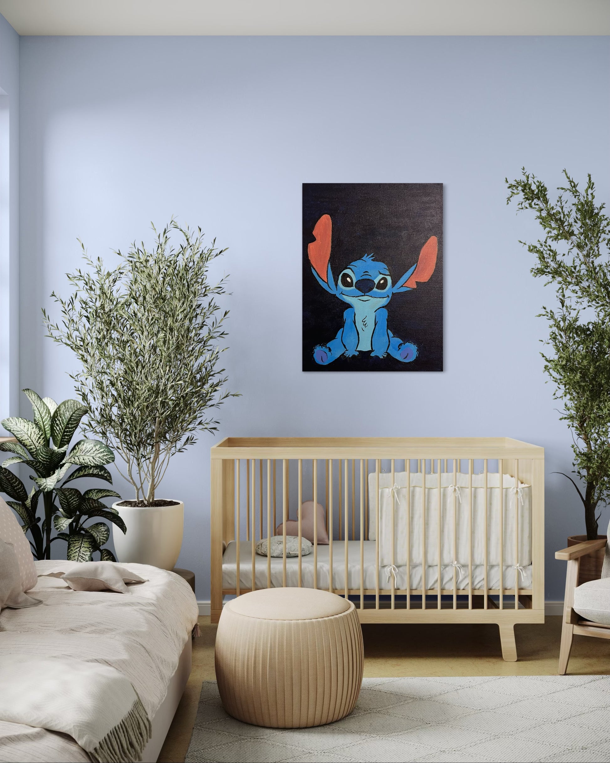 Add a playful and heartwarming touch to your child’s bedroom with this acrylic painted portrait of Stitch. Its charming design bring joy and creativity to any space, making it an ideal decoration that kids will adore and cherish.